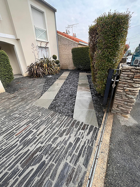 Découvrez nos réalisations d’aménagements extérieurs à Donges (44 – Loire-Atlantique), conçues sur mesure pour valoriser chaque espace. Terrasses, allées, clôtures, portails alliant esthétique, durabilité et savoir-faire local.